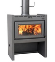 Características: Es un equipo de alto rendimiento y doble combustión, gracias a esto, optimiza el uso de leña y entrega un 80% más de calor que un hogar abierto. Cuenta con visor vitrocerámico que permite la experiencia de ver el fuego, además de cierre hermético para no liberar olores ni humo al ambiente.