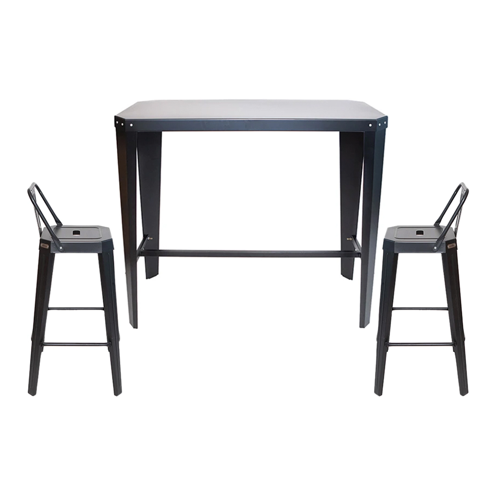Combo MESA ALTA RUNKO 120 + 2 BANQUETA RUNKO 73 NEGRA CON RESPALDO