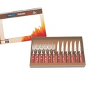 El juego contiene 6 cuchillos para asado 4", 6 tenedores de mesa.